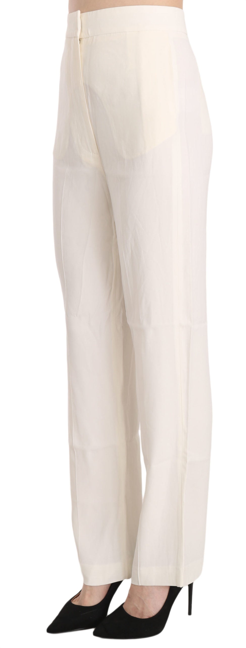 Weiße hoch taillierte, gerade geschnittene Kleiderhosen