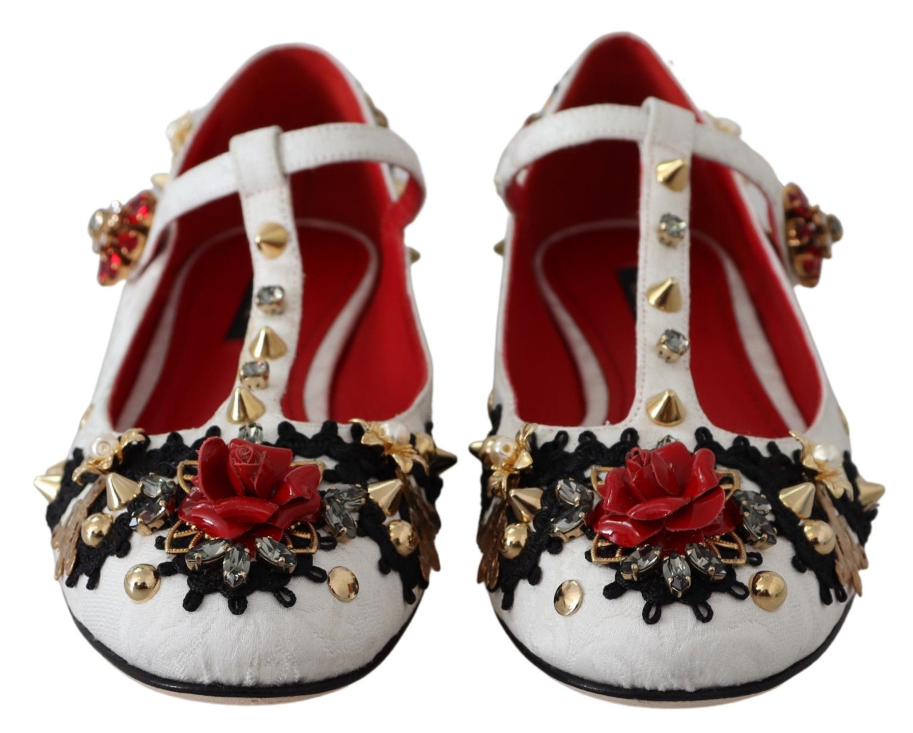 Wunderschön, ganz neu mit Tags 100% Authentic Dolce & Gabbana Ballerina Wohnungen Schuhe mit Jacquard-Muster und Kristallen Nieten.