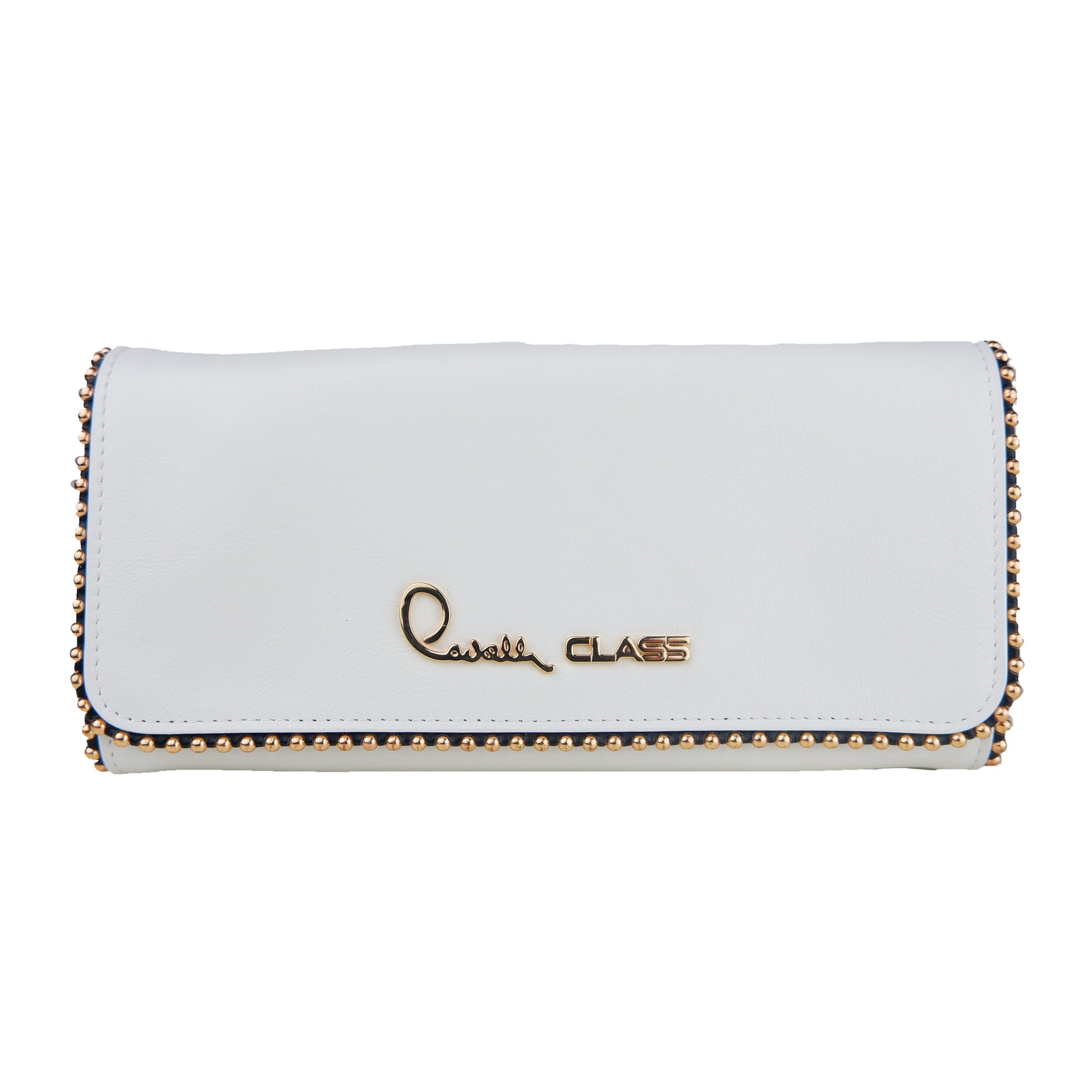 Cavalli Class Crossbody Bag, weiße Farbe, Markenlogo auf der Vorderseite, Clipverschluss.