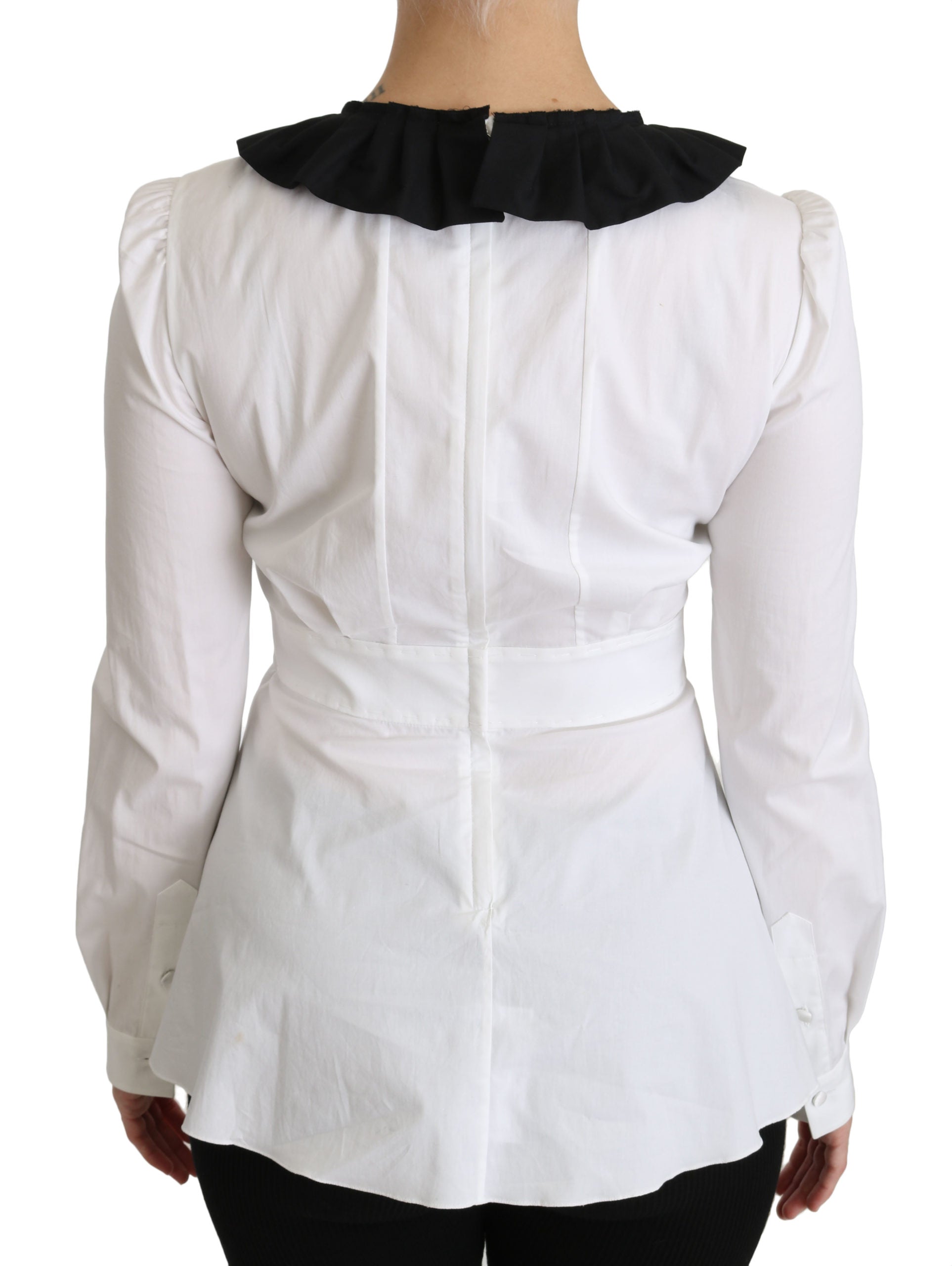Weiße Langarmbluse mit Kragen Baumwolltop