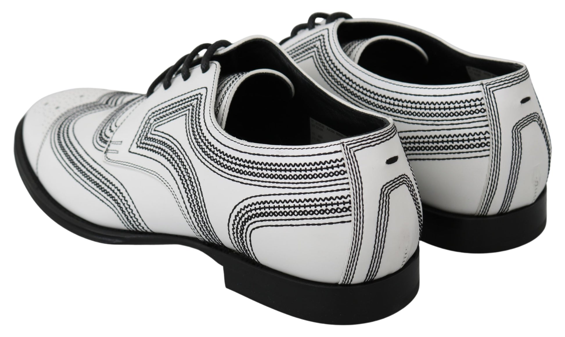 Weiße Leder Derby Formal Schwarze Spitzenschuhe