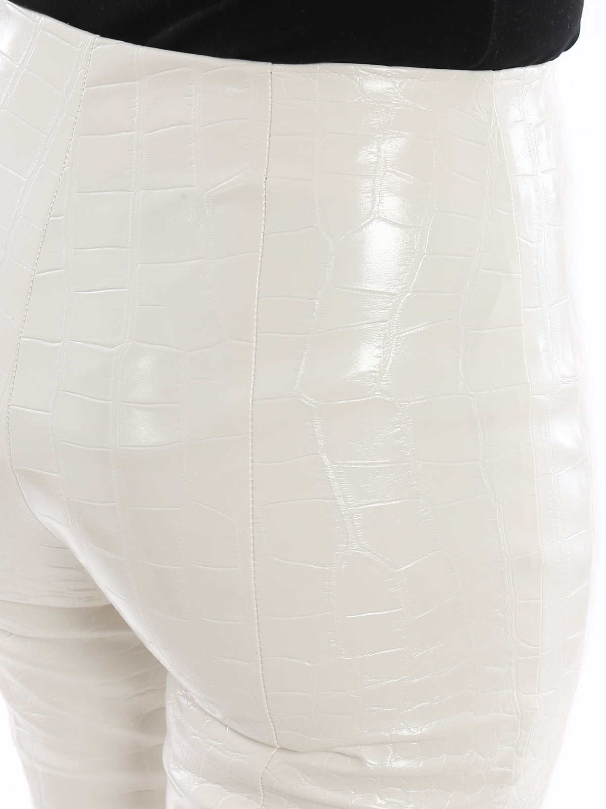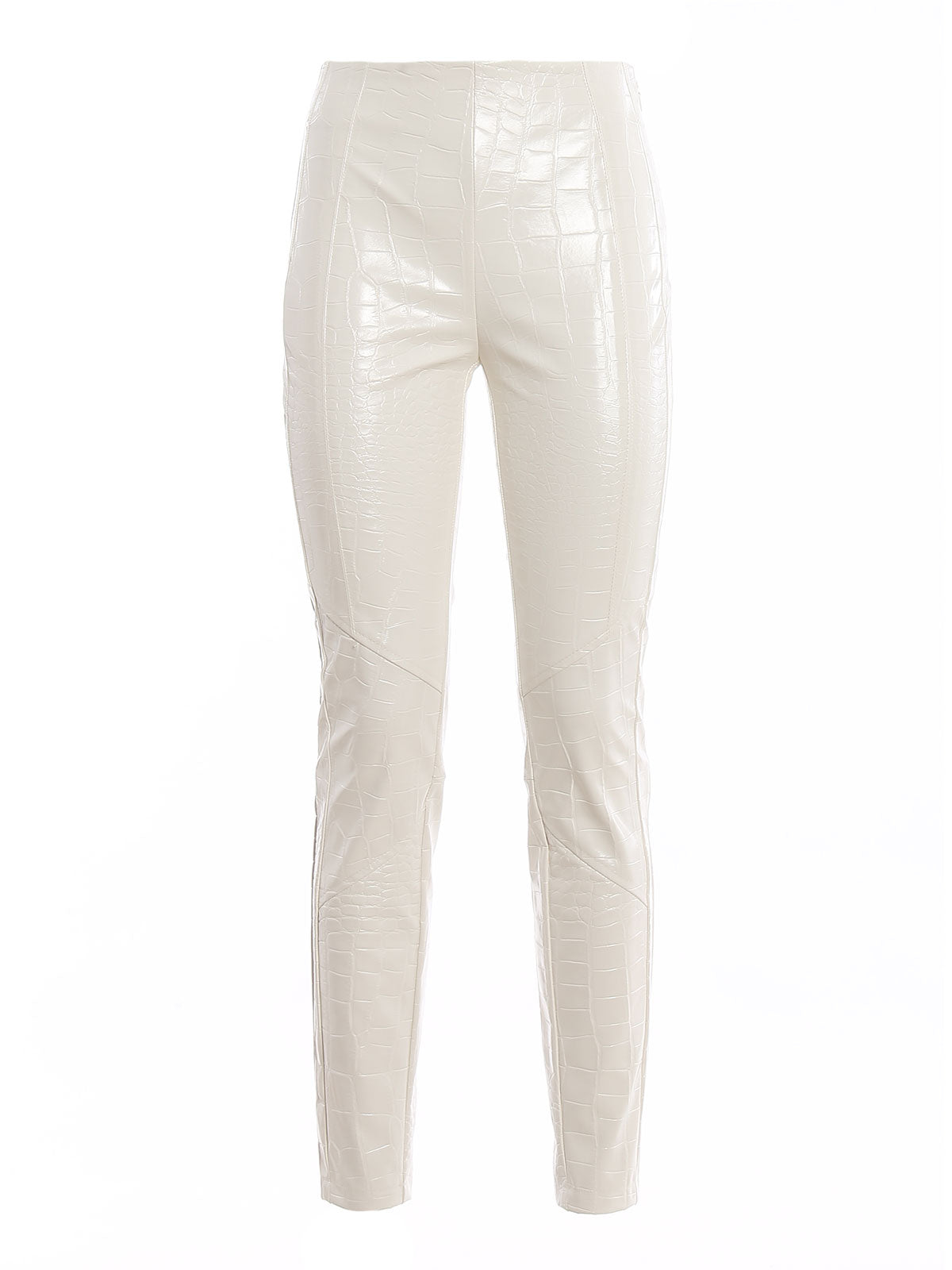 Step-Hose aus Lederimitat mit glänzendem Krokodilprint, unsichtbarer Reißverschluss an der Seite.