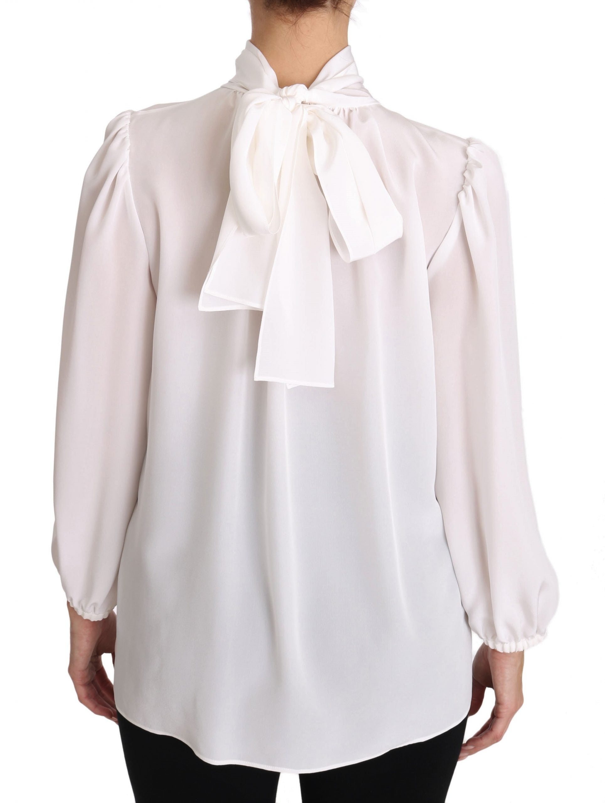 Absolut atemberaubend, 100% authentisch, brandneu mit Tags Dolce & Gabbana Schlichtes weißes Seiden-Langarm-Top