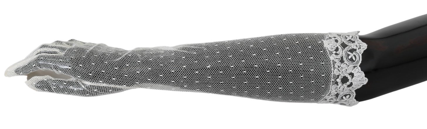 Weiße Spitze Ellenbogenlänge Handschuhe aus Baumwolle