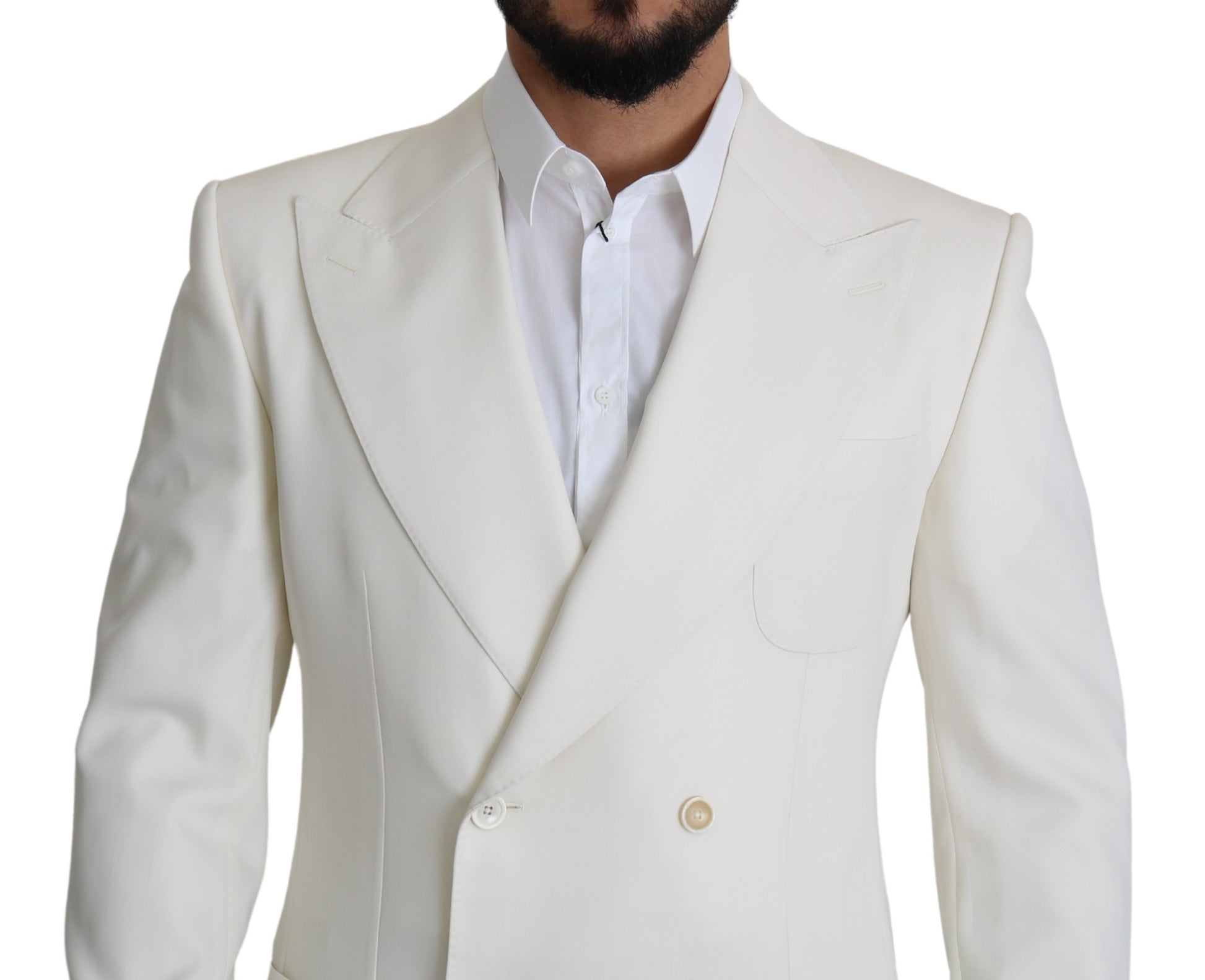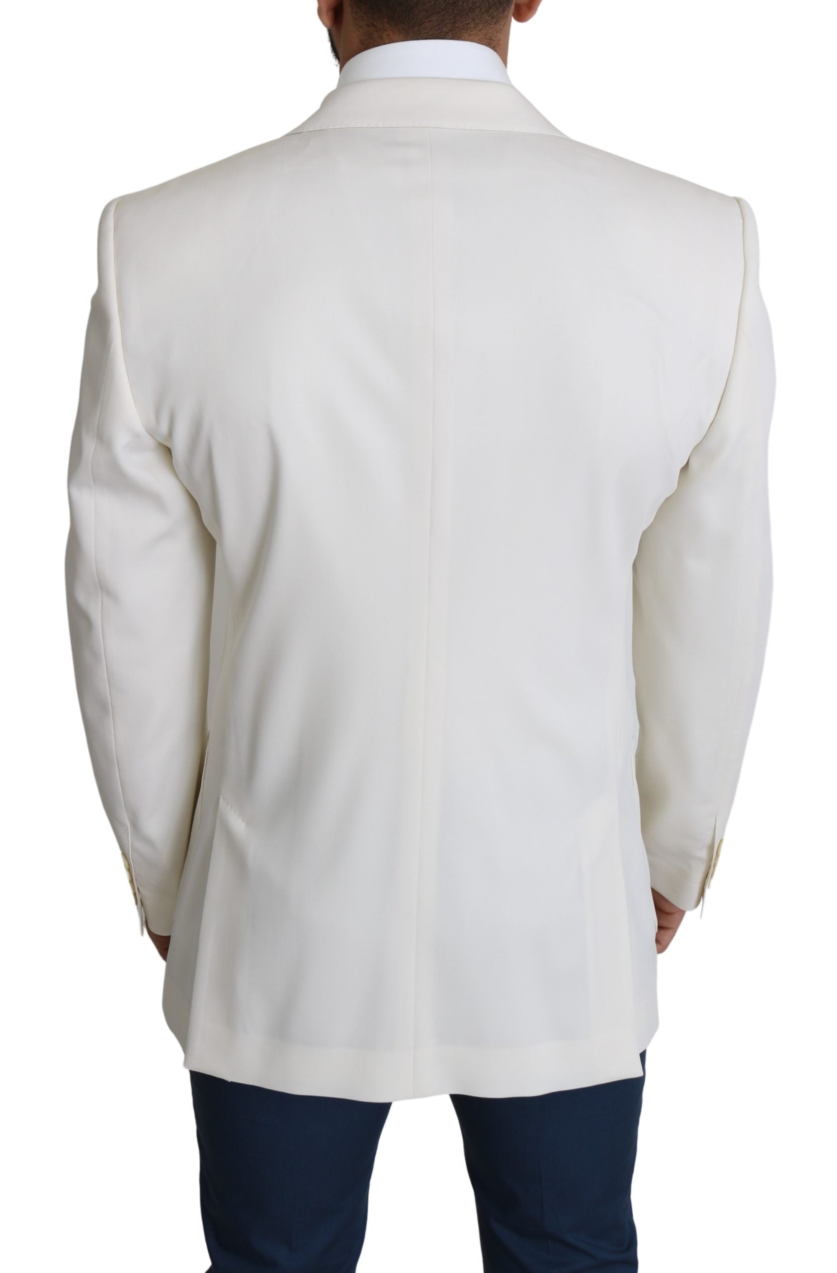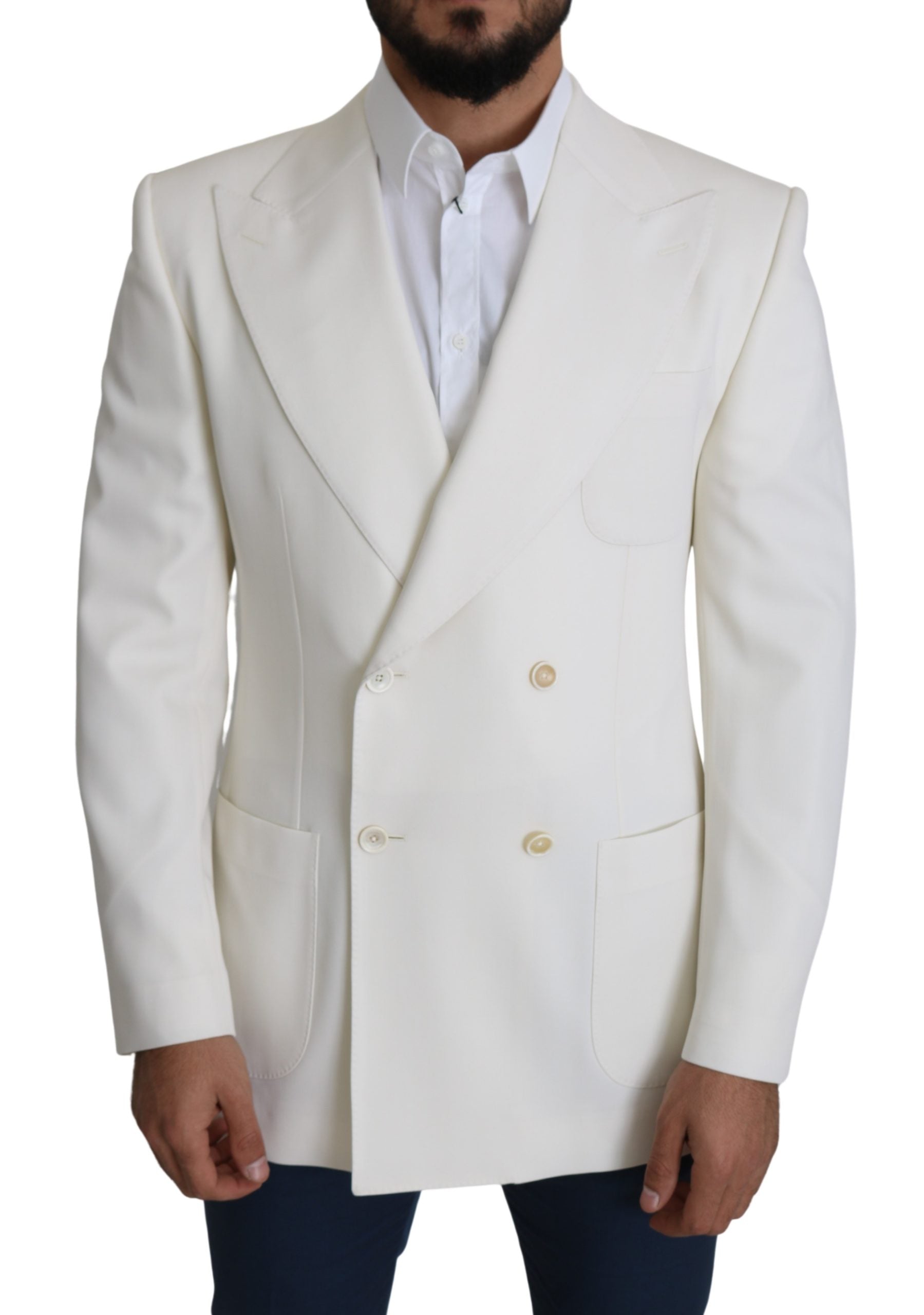 Absolut atemberaubend, 100% authentisch, brandneu mit Tags Dolce & Gabbana Weißer, zweireihiger Blazer aus feiner, glatter Wolle mit Spitzrevers, zwei Knöpfen und drei Taschen vorne.