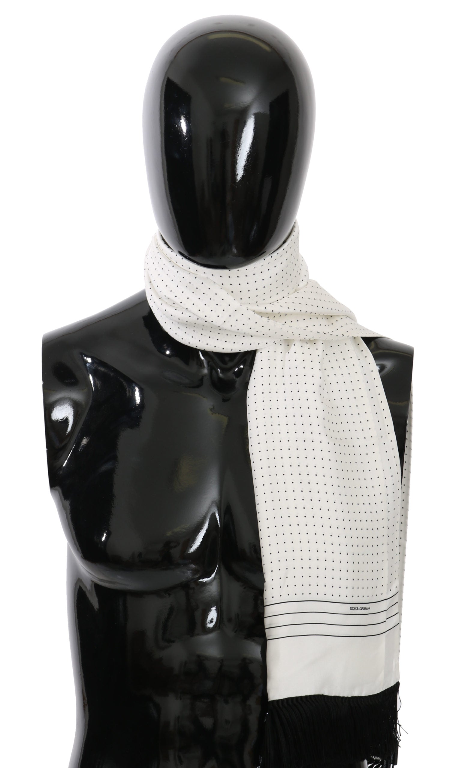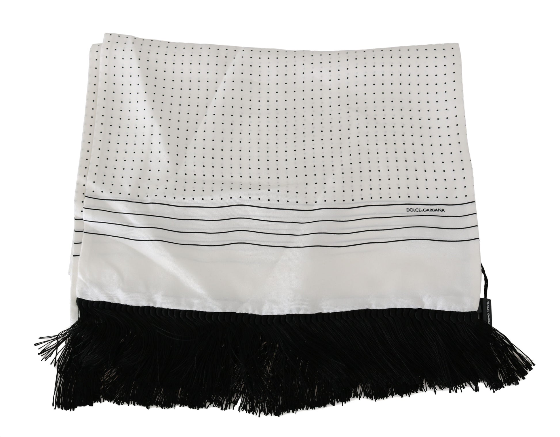 Weißer gepunkteter Fransen-Wickelschal Seidenschal