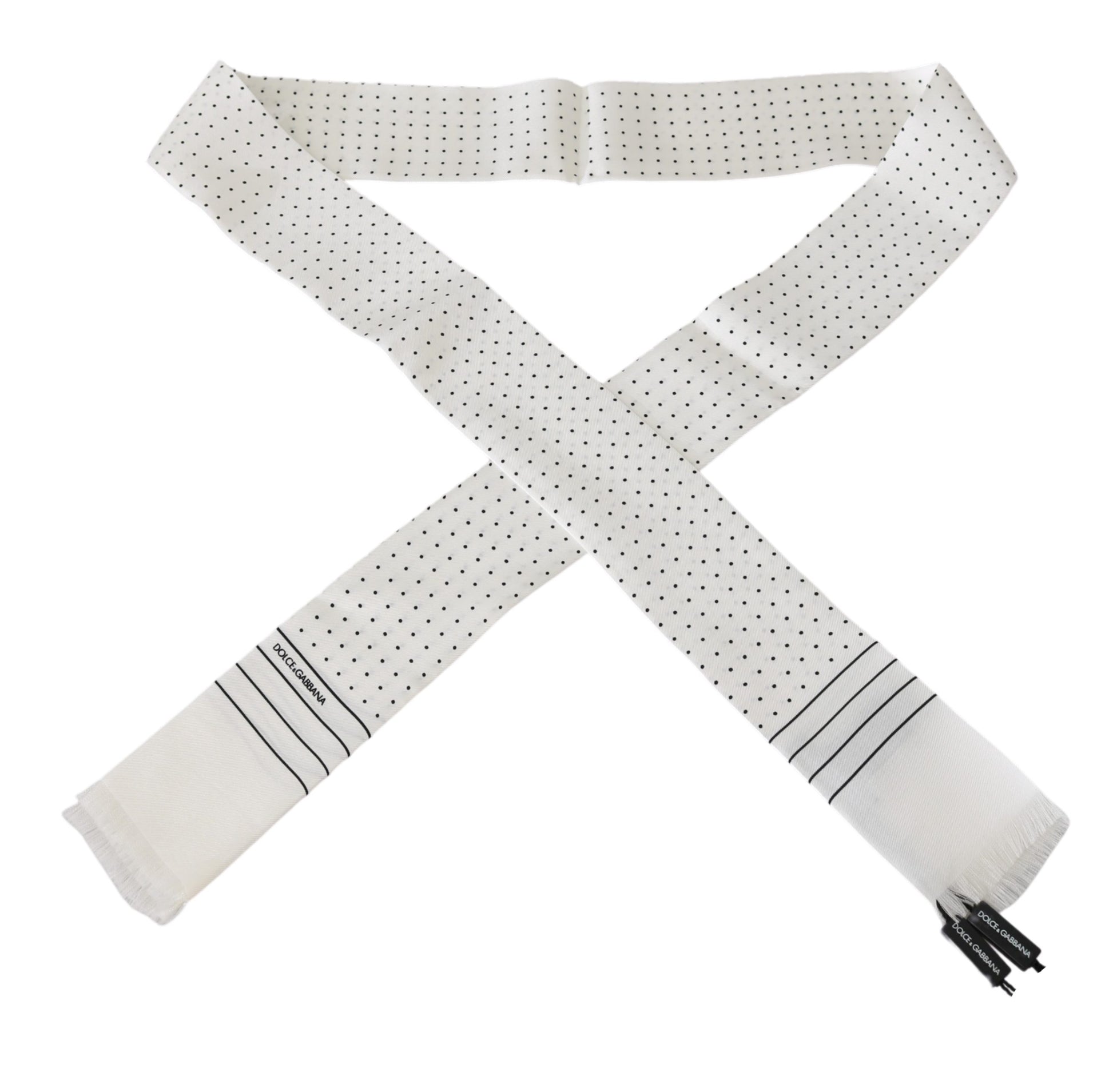 Weißer gepunkteter schmaler Wickelschal Seidenschal