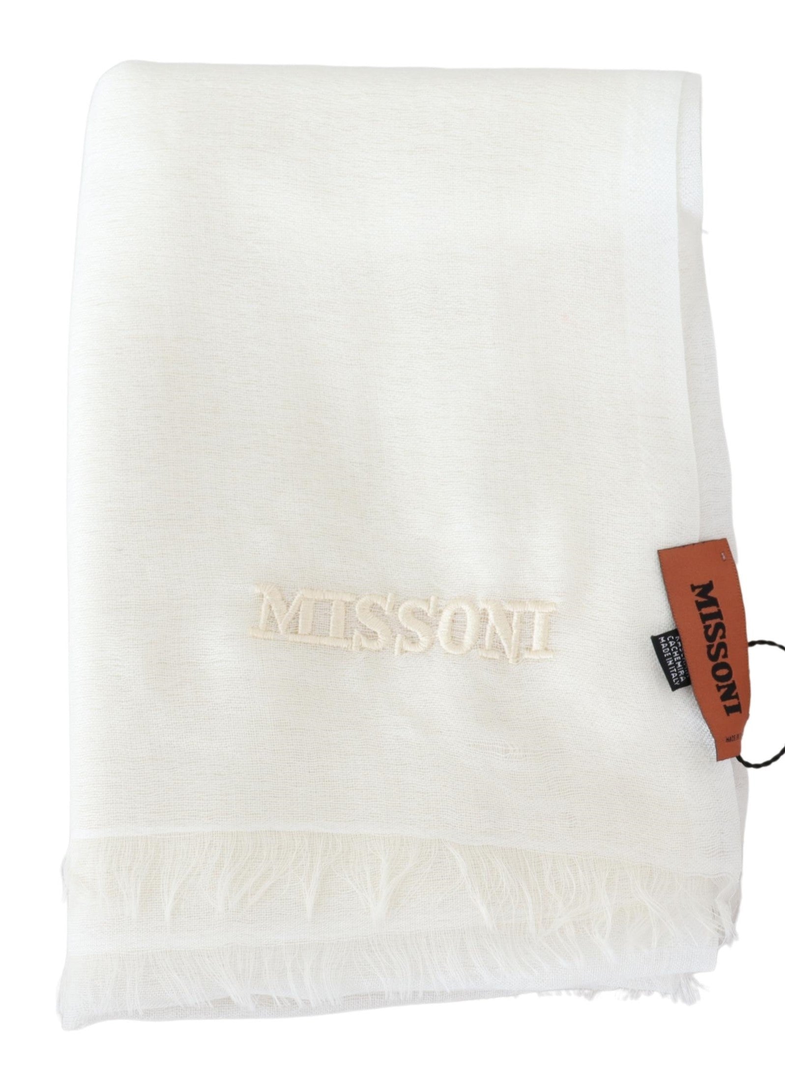 Wunderschöner, brandneuer, 100% authentischer Missoni Kaschmirschal mit Muster und gesticktem Markenlogo.