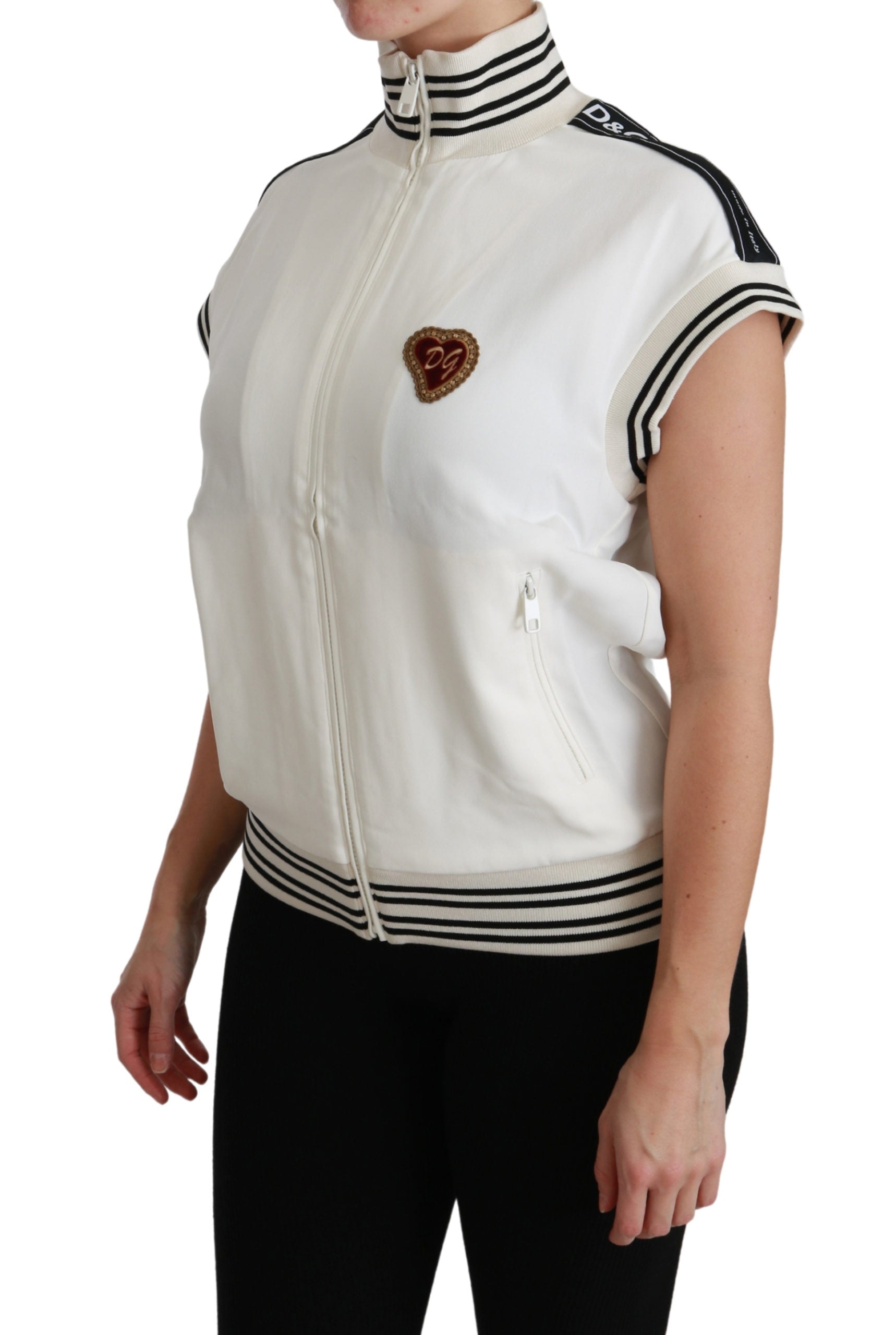 Weißer Sacro Cuore Herz Pullover mit Reißverschluss