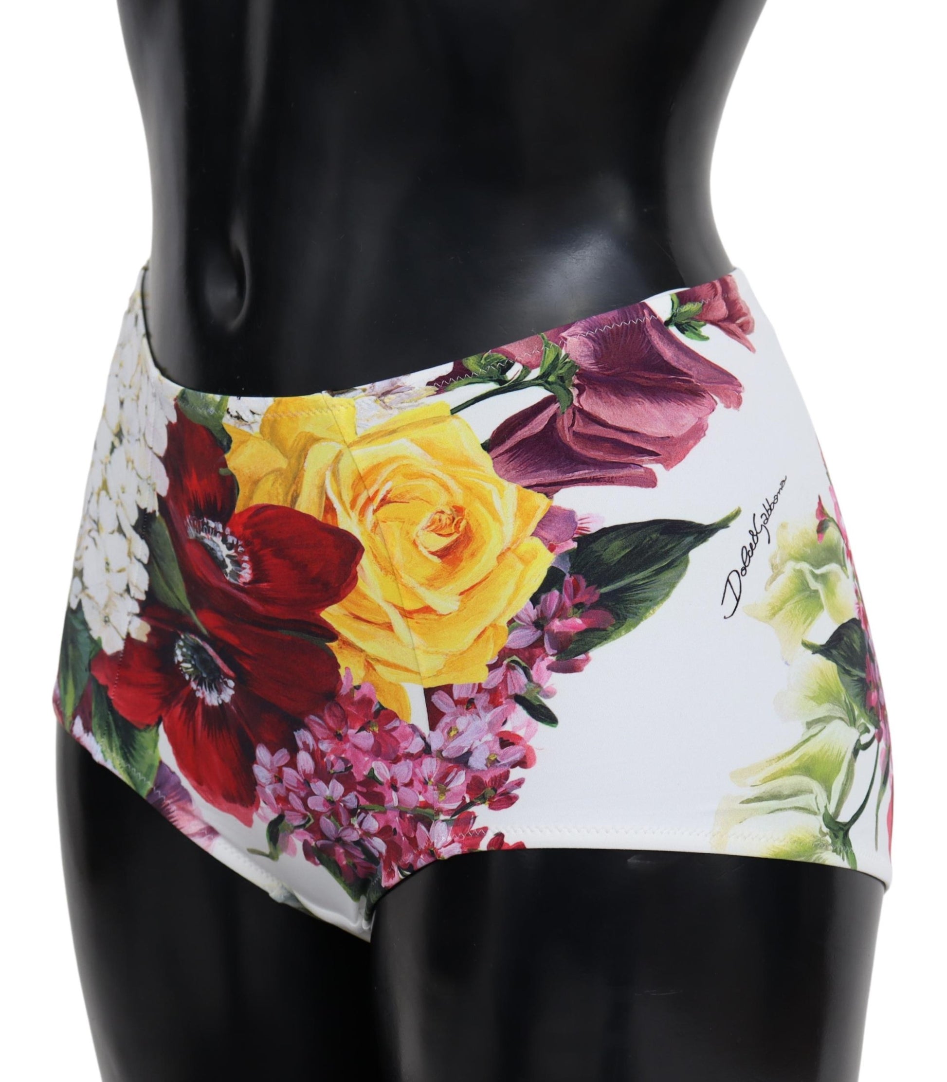 Wunderschönes, brandneues, 100% authentisches Dolce & Gabbana weißes Bikini-Unterteil mit hoher Taille und Blumendruck.