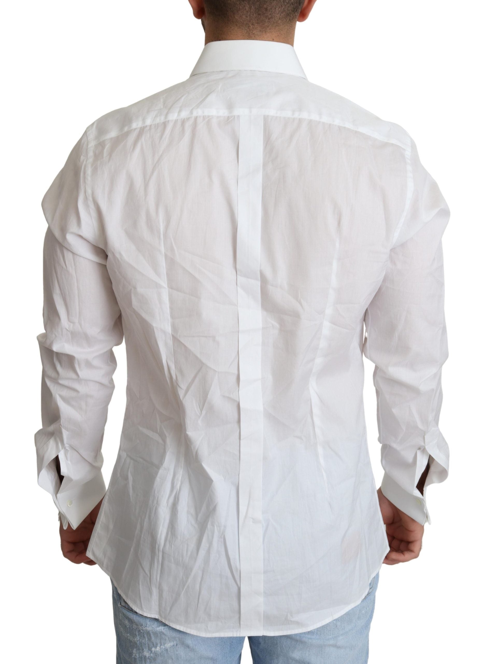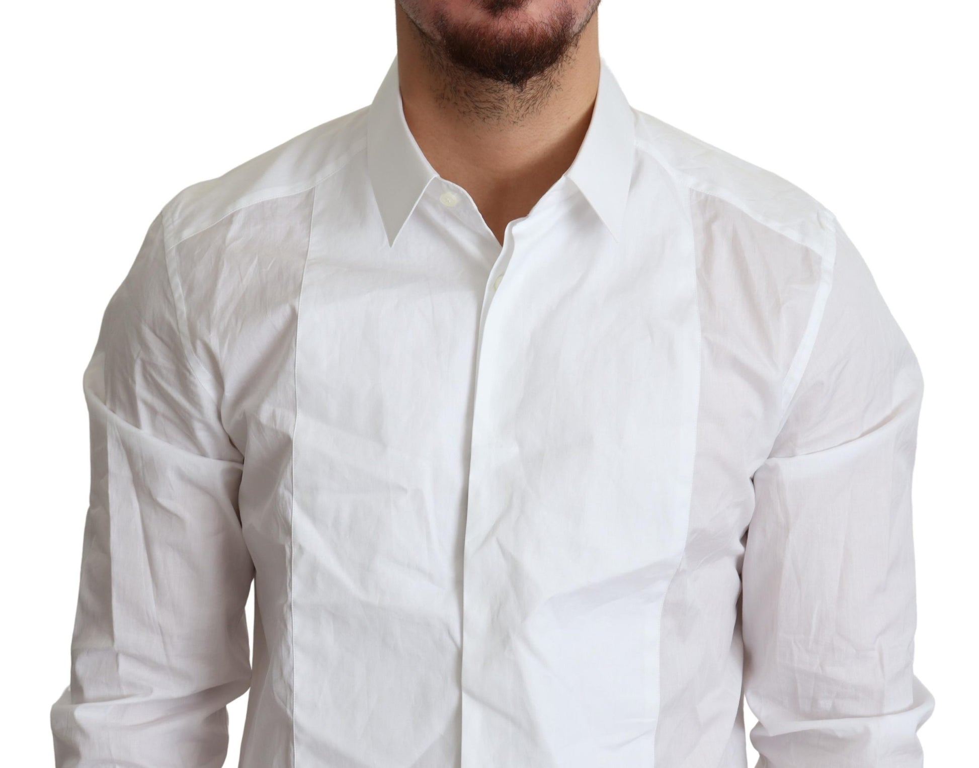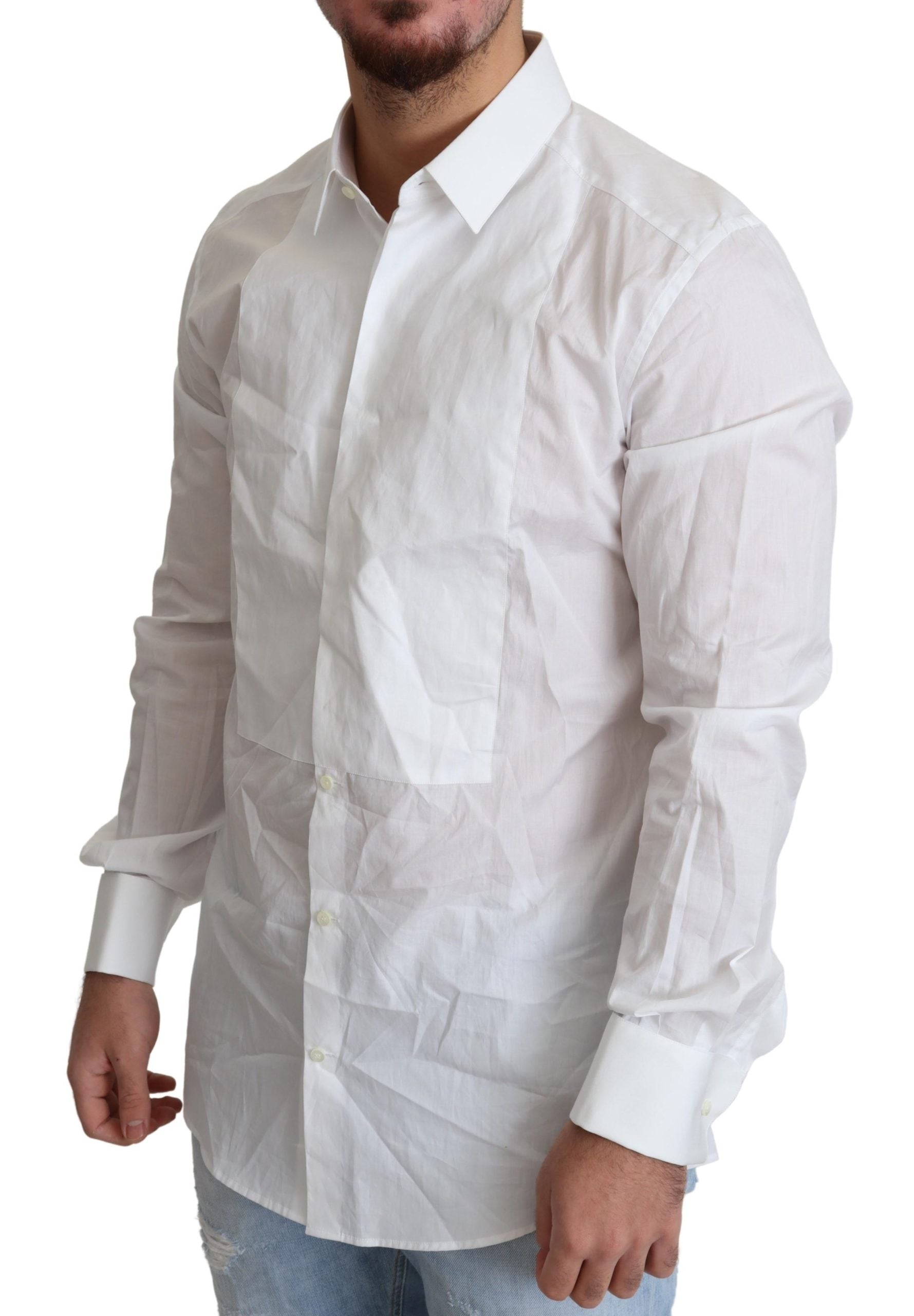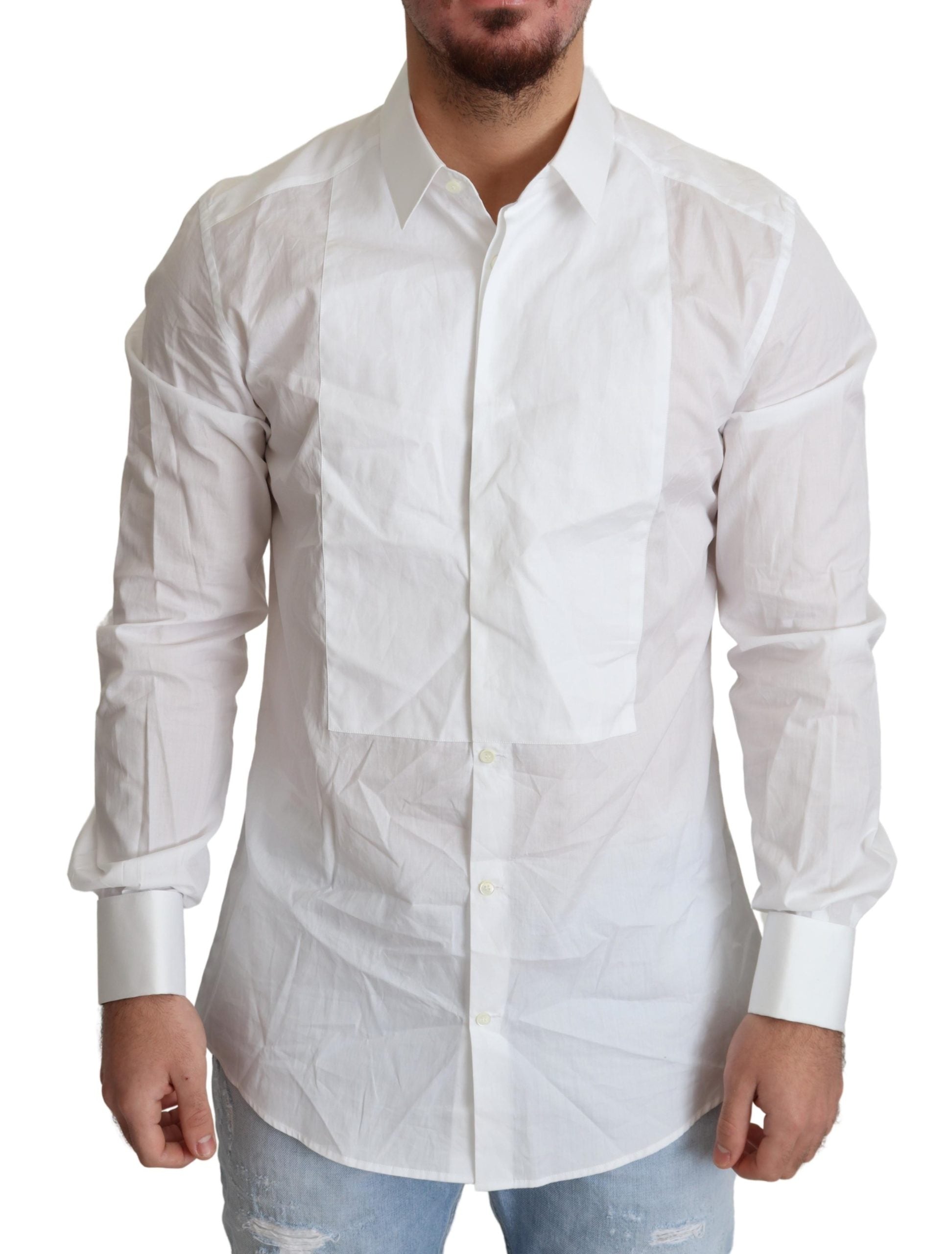 Absolut atemberaubend, 100% authentisch, ganz neu mit Tags Dolce & Gabbana Baumwollhemd mit Gold-Passform. Es verfügt über plissiertes Plastron, gespreizten Kragen, Rückenpasse und Kellerfalte. Ein-Knopf-Manschetten.