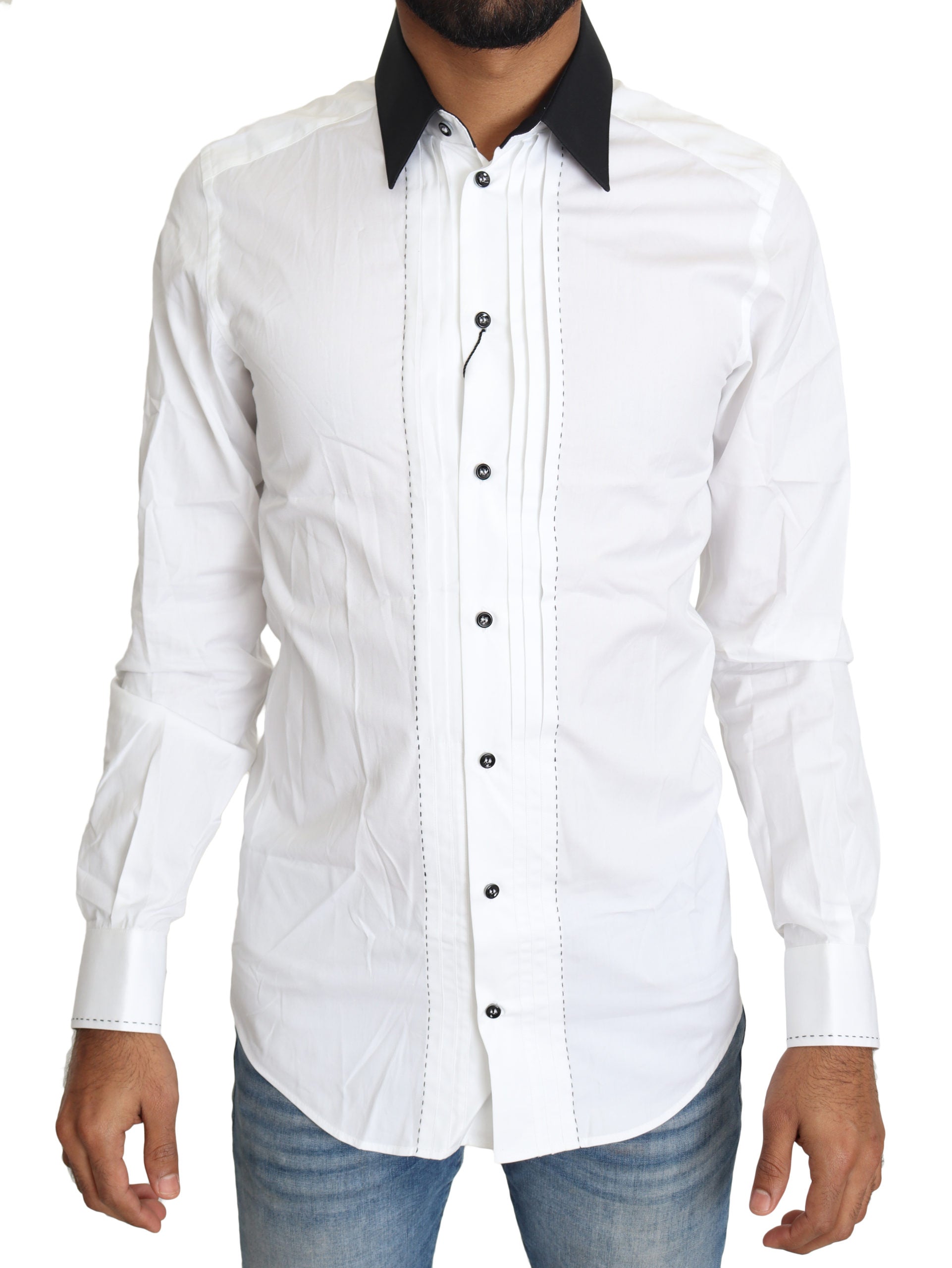 Absolut atemberaubend, 100% authentisch, brandneu mit Etiketten Dolce & Gabbana GOLD Weißes Hemd aus feiner, weicher Baumwolle. Es hat einen gespreizten Kragen und Manschetten mit einem Knopf.