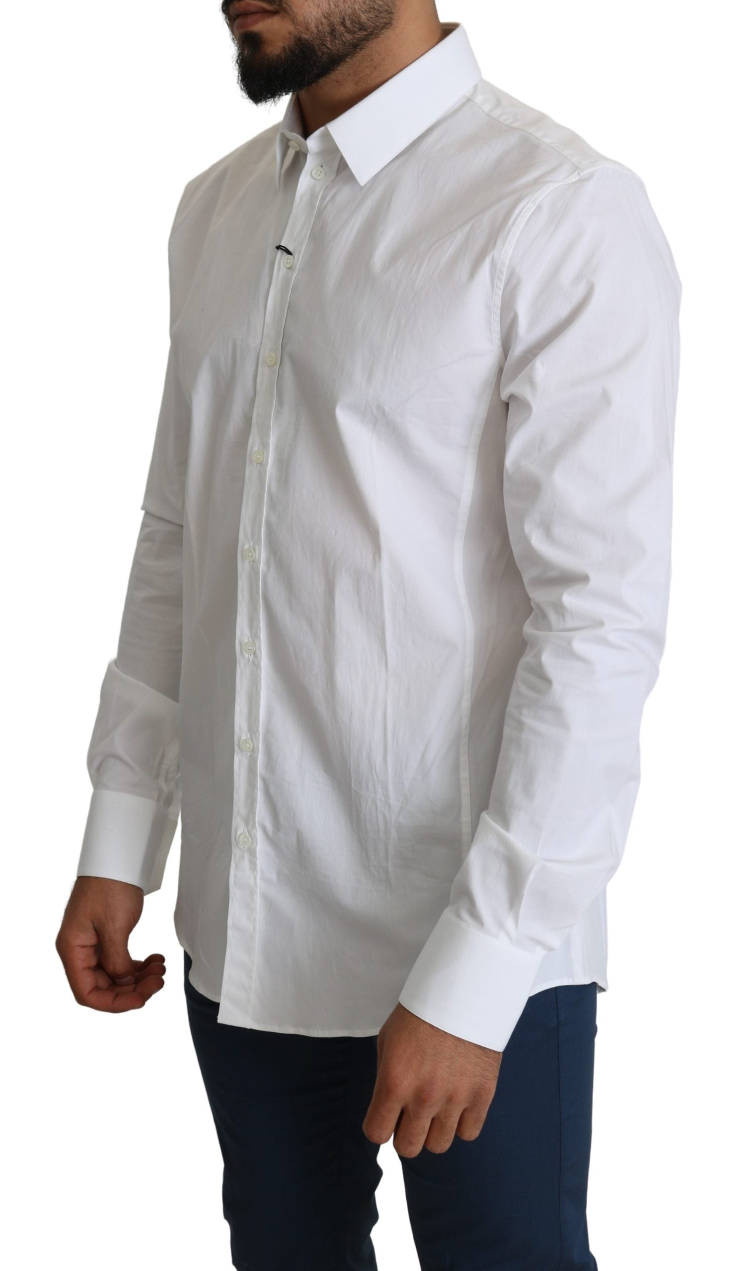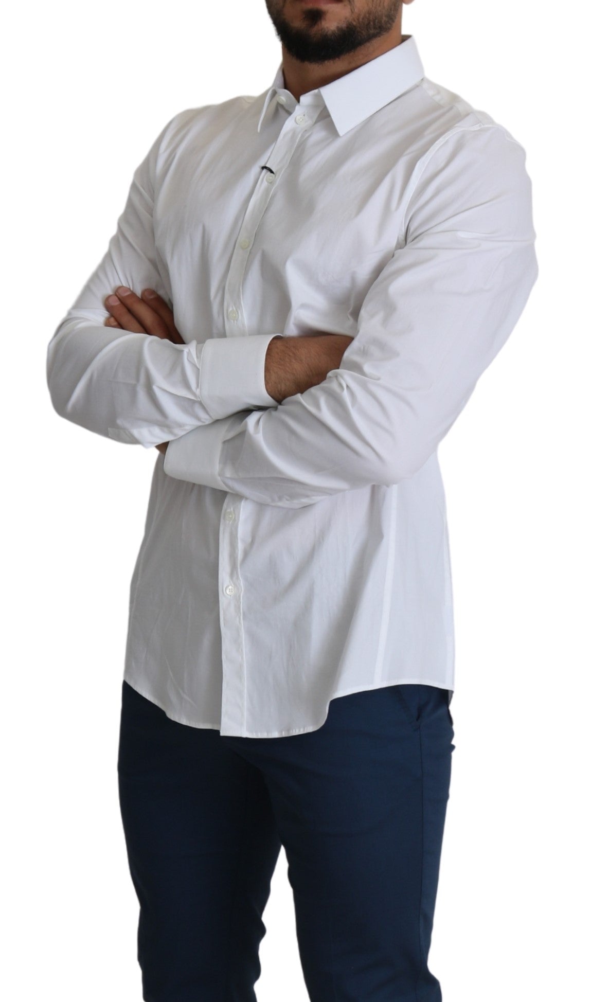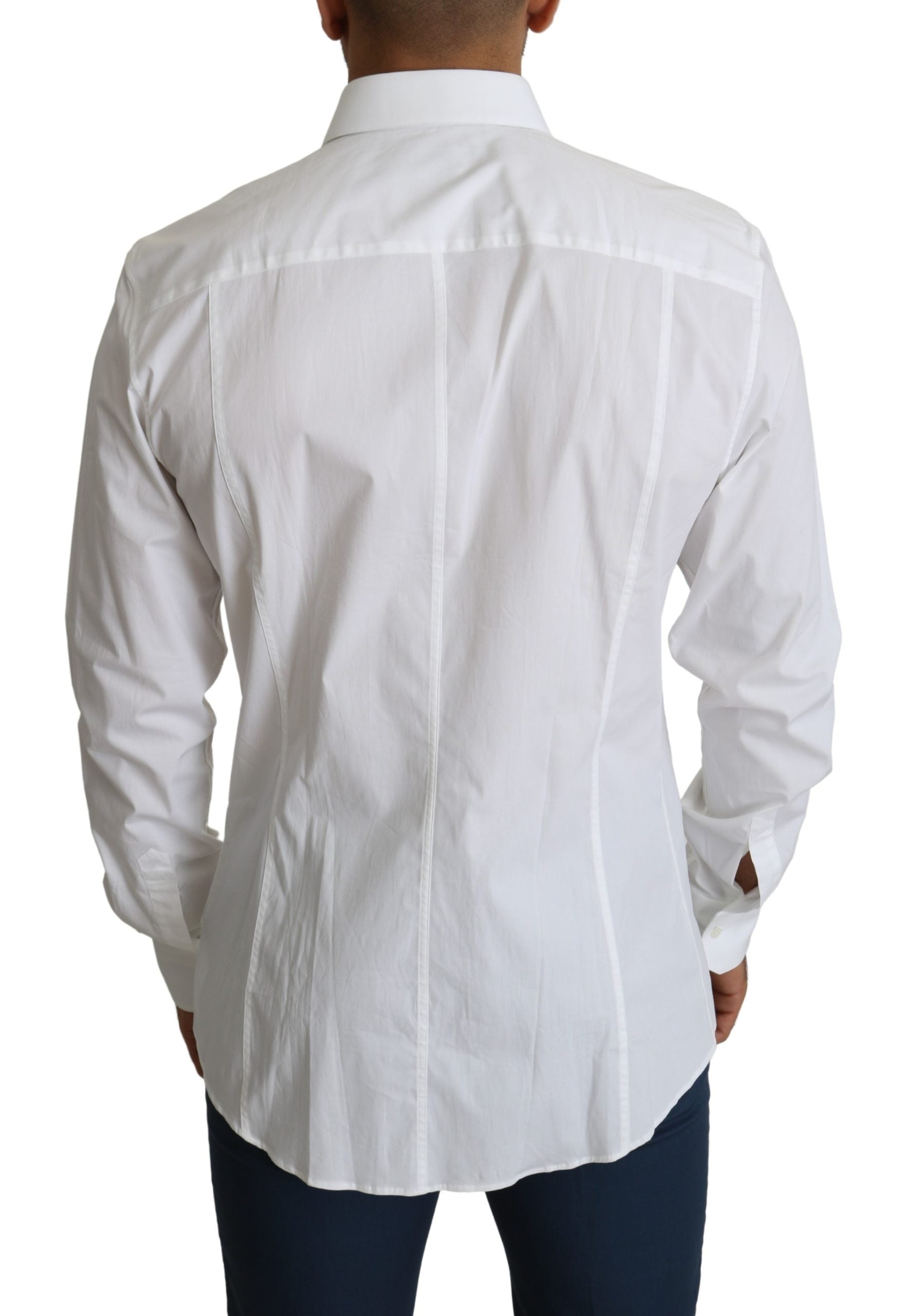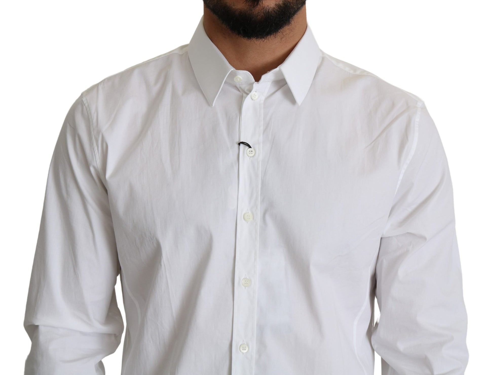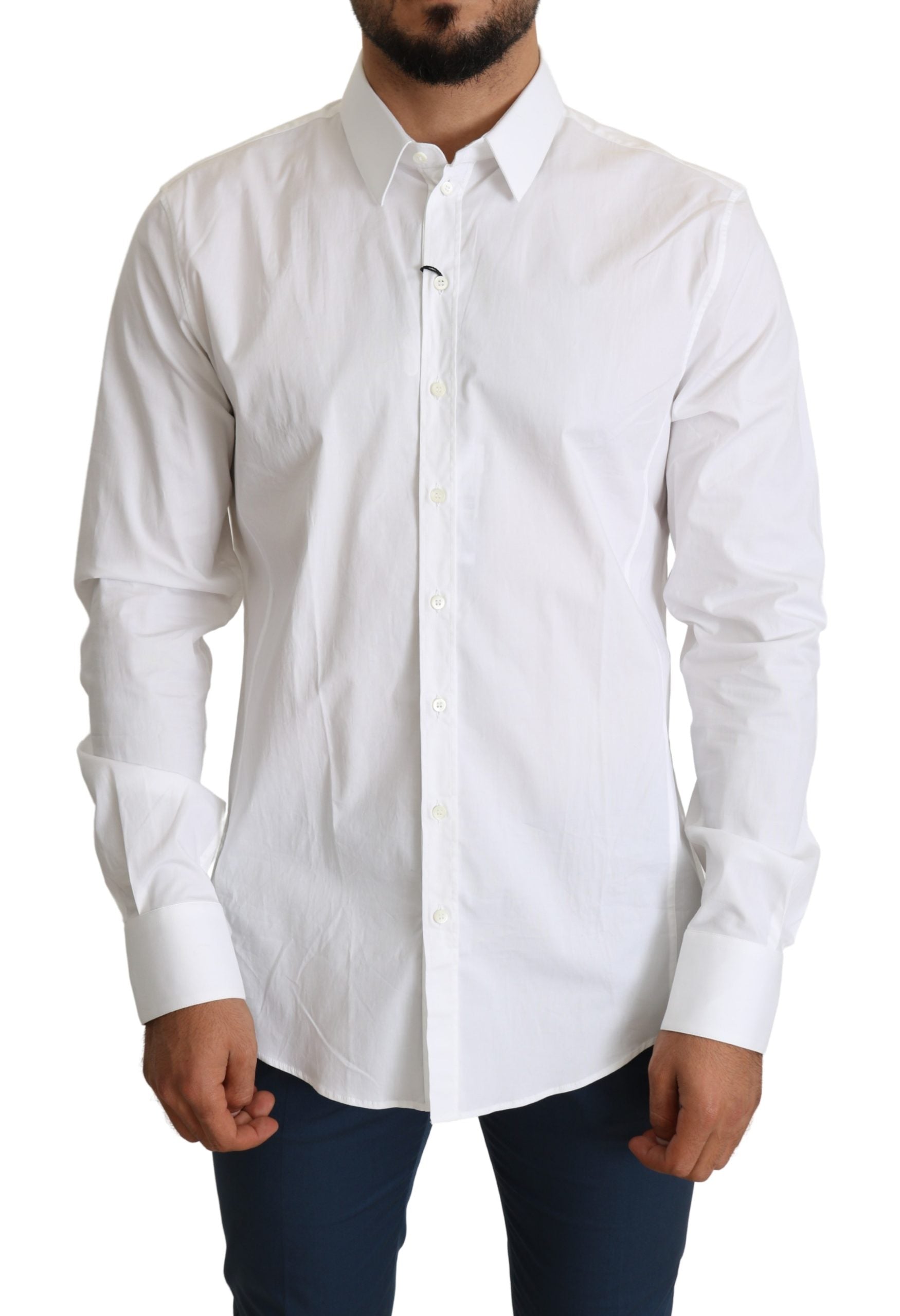 Absolut atemberaubend, 100% authentisch, brandneu mit Tags Dolce & Gabbana Baumwoll-Stretchhemd mit Sicilia-Passform. Es verfügt über gespreizten Kragen und Ein-Knopf-Manschetten.