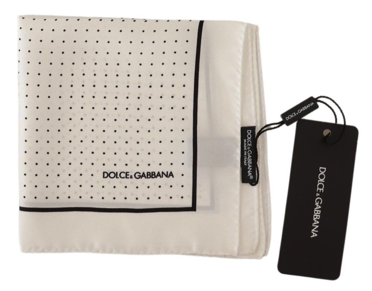 Weißes gepunktetes quadratisches Taschentuch aus Seide