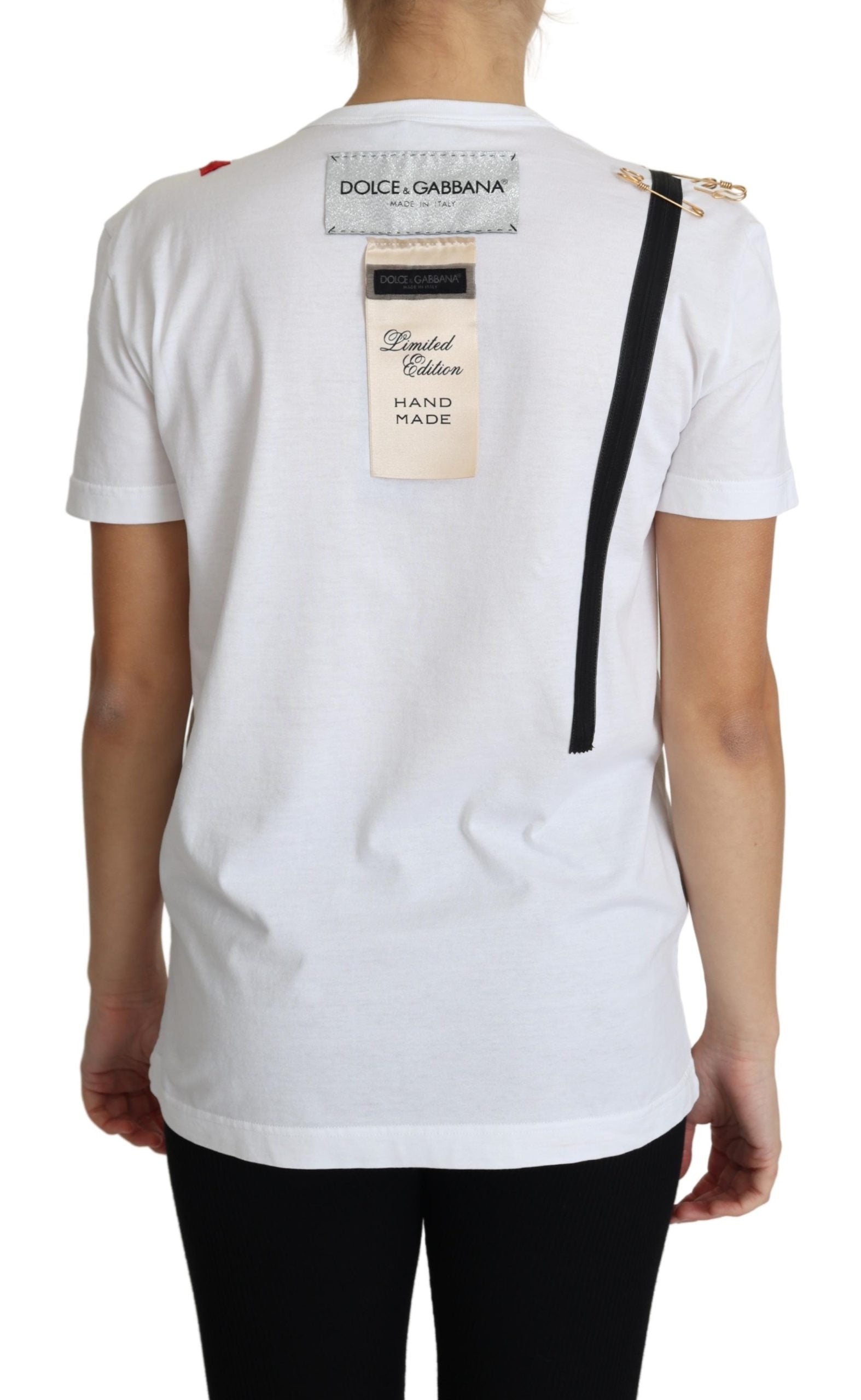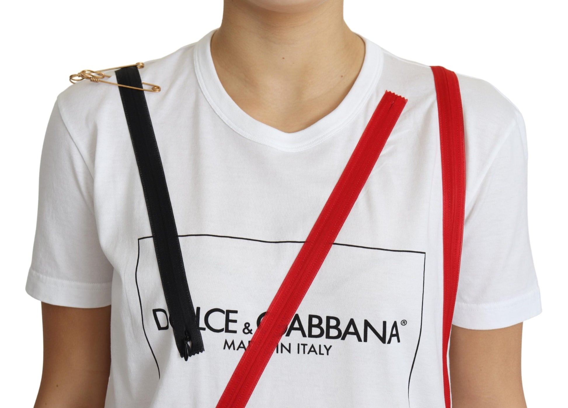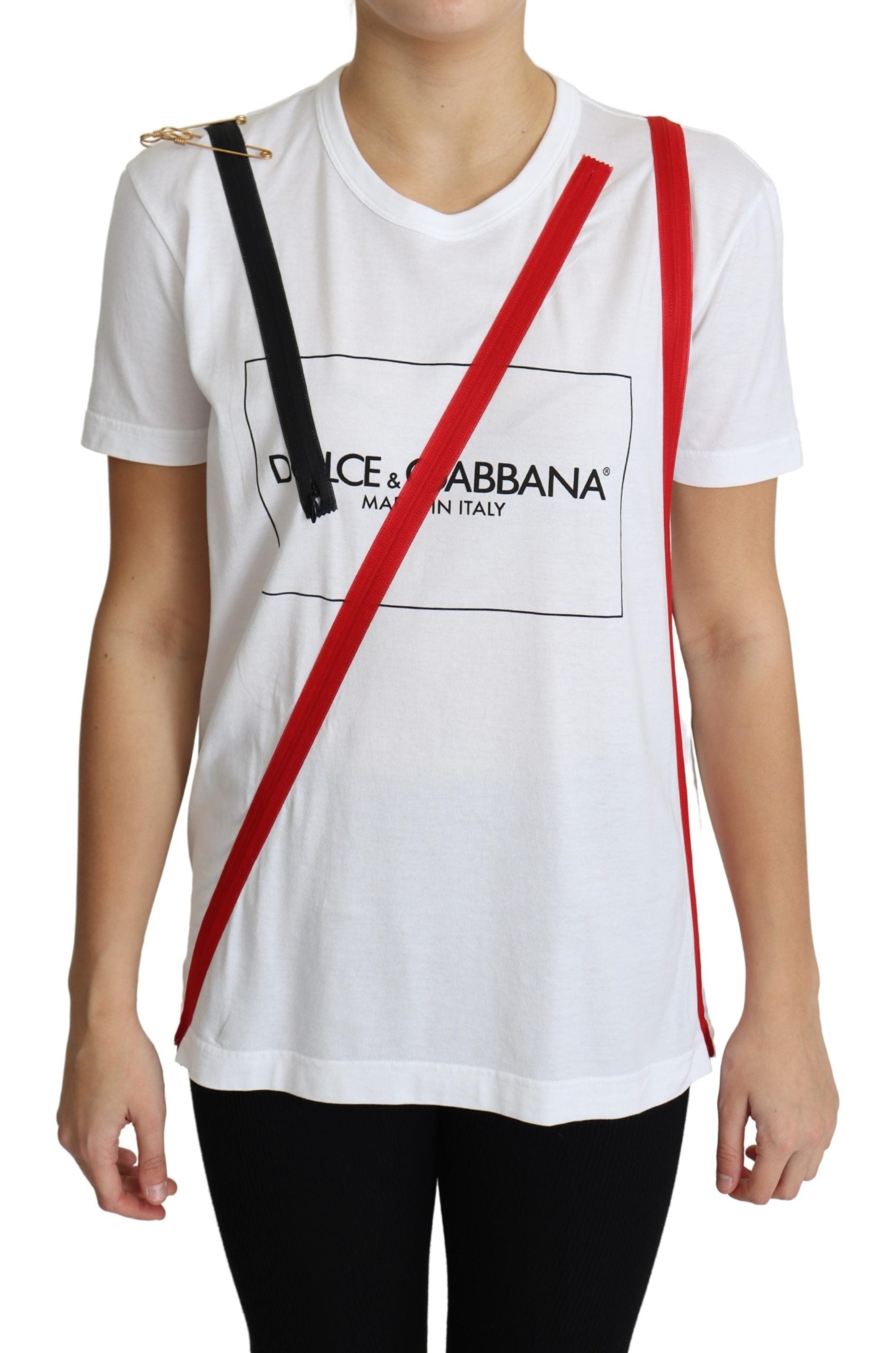 Gorgeous brandneu mit Tags, 100% Authentic Dolce & Gabbana weiß Hand Made, Limited Edition T-Shirt. Hergestellt aus Baumwolle. Verziert mit einem Reißverschluss auf der Vorderseite. Es verfügt über kurze Ärmel und Rundhalsausschnitt.