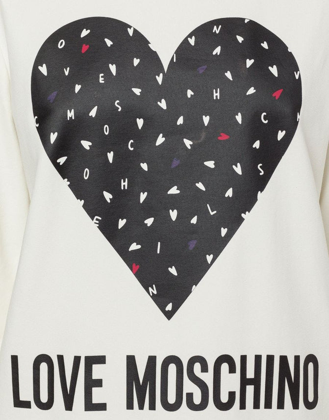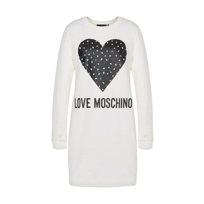 Dieses langärmelige Kleid von Love Moschino aus dehnbarem Baumwollmischgewebe ist ideal, um Stil zu zeigen, ohne auf Komfort zu verzichten. Es hat eine normale Passform mit einem Herz-Print auf der Vorderseite, mit Mini-Herzen im Inneren und einem Logo darunter.