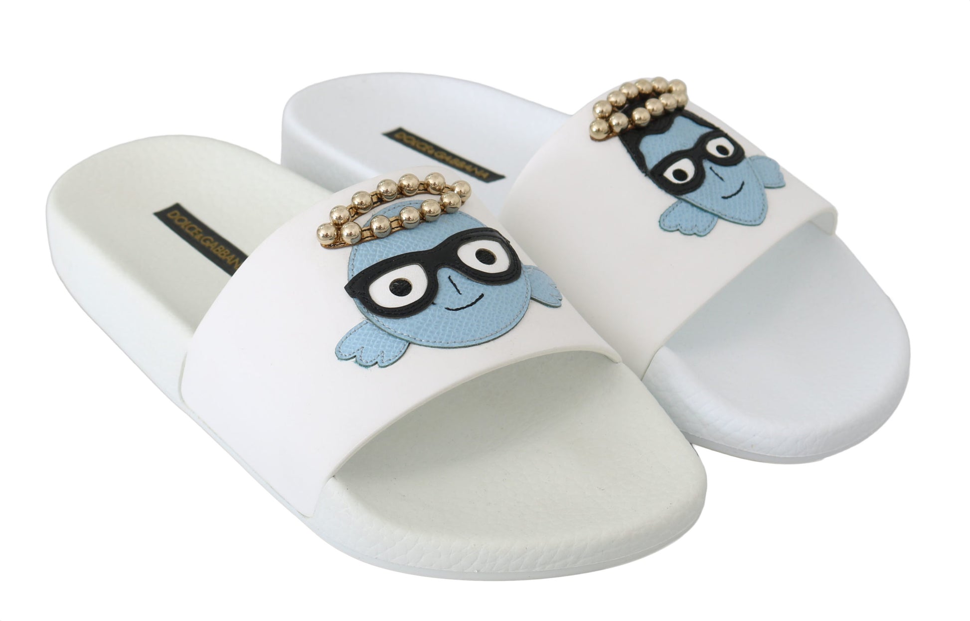 Weißes Leder #dgfamily Rutschen Sandalen