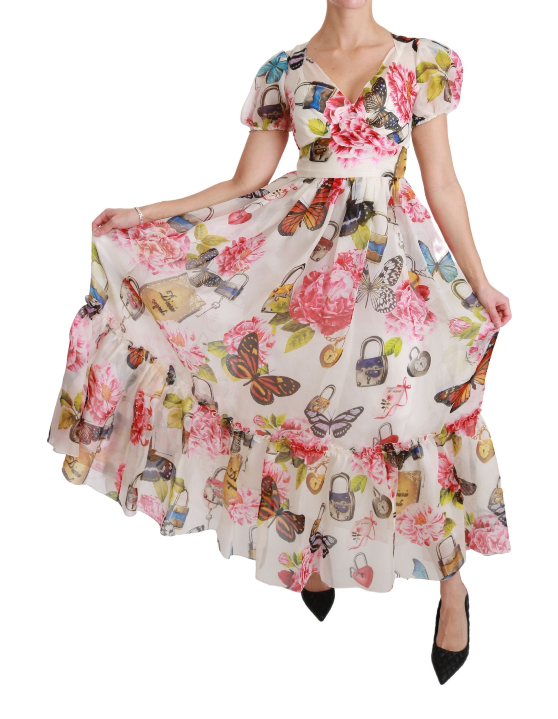 Weißes Seidenschmetterlingskleid in A-Linie im Etuikleid