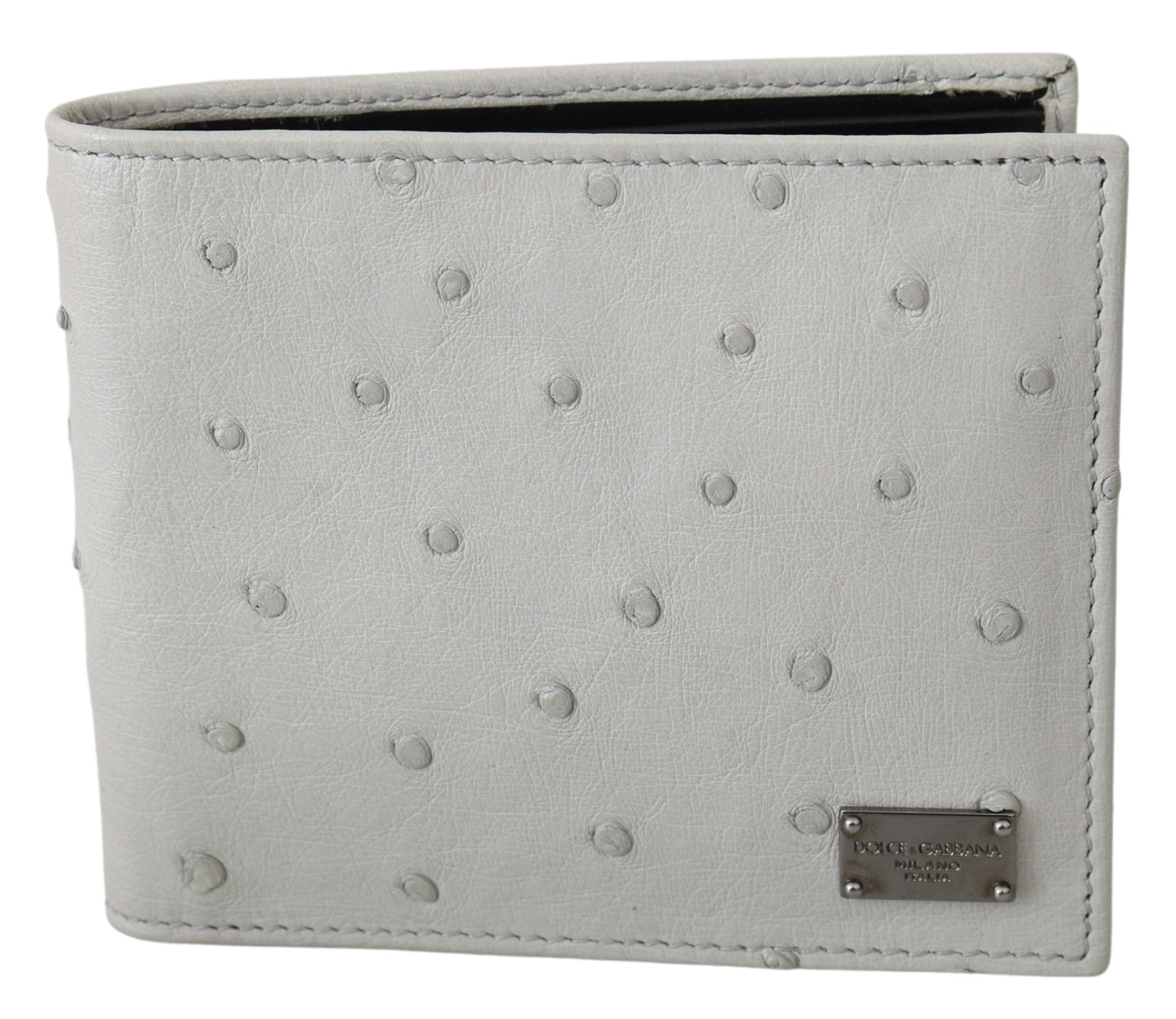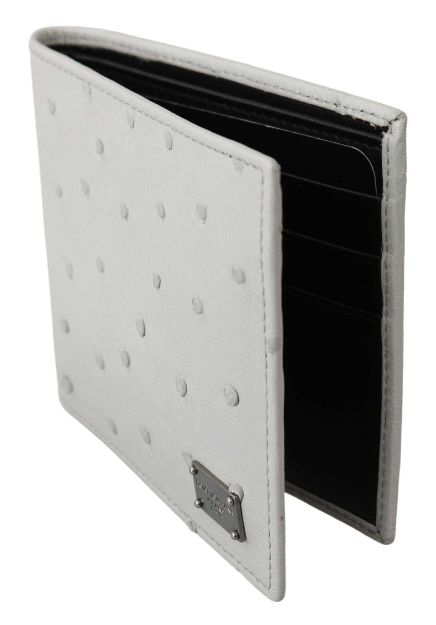 Weißes Straußenleder Bifold Herrenkarte Geldbörse mit Schlitz