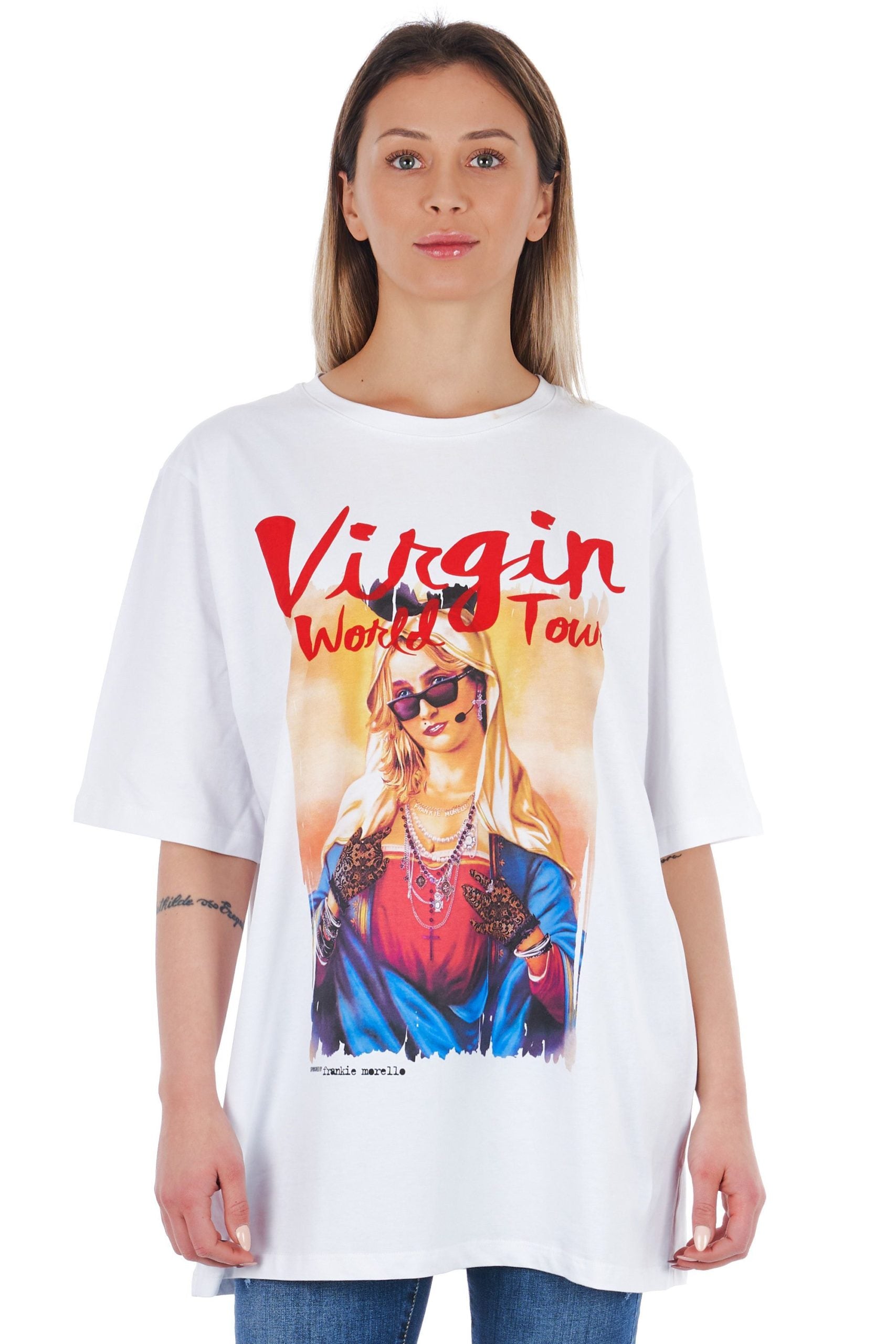 Übergroßes T-Shirt mit Druck auf Vorder- und Rückseite.