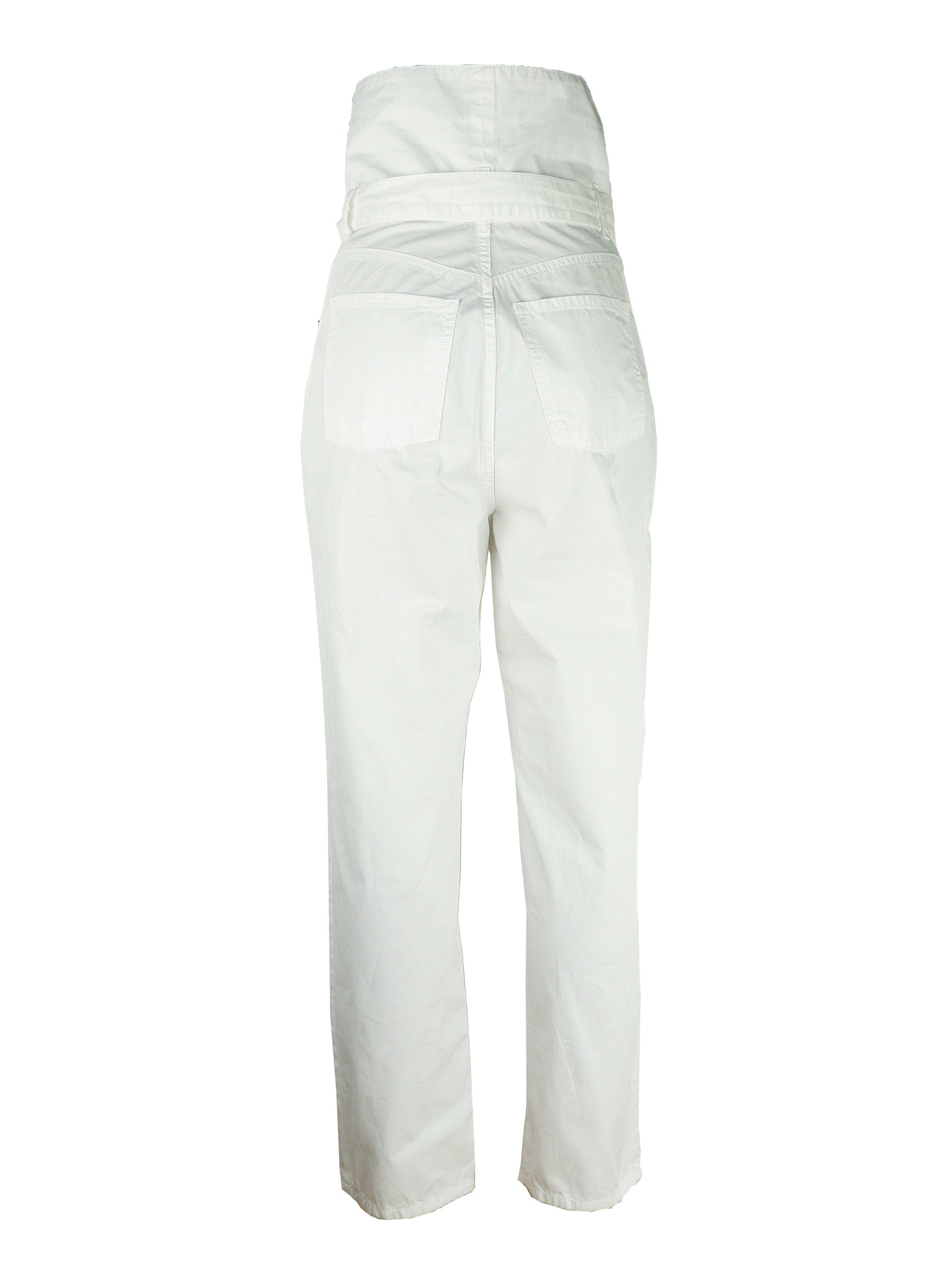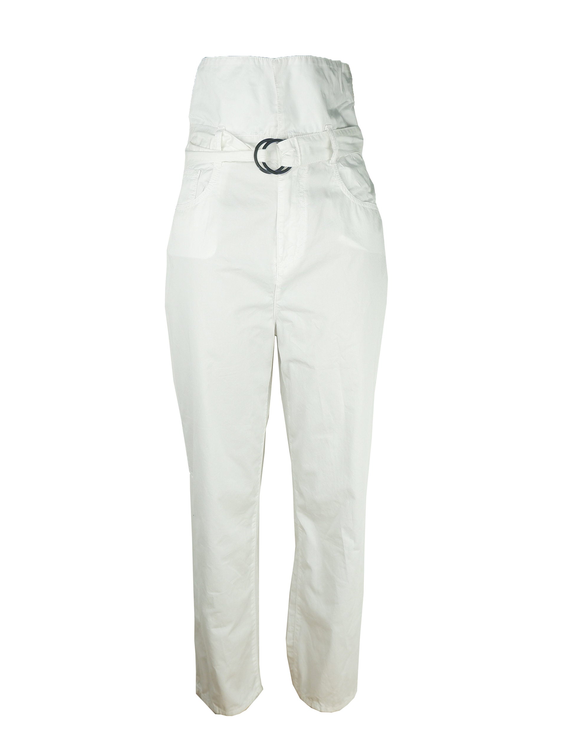 Pinko High-Rise Hose 100% Baumwolle, 5-Pocket-Design, weiße Farbe, Reißverschluss und Baumwollgürtel mit Metallschnalle. In Italien hergestellt
